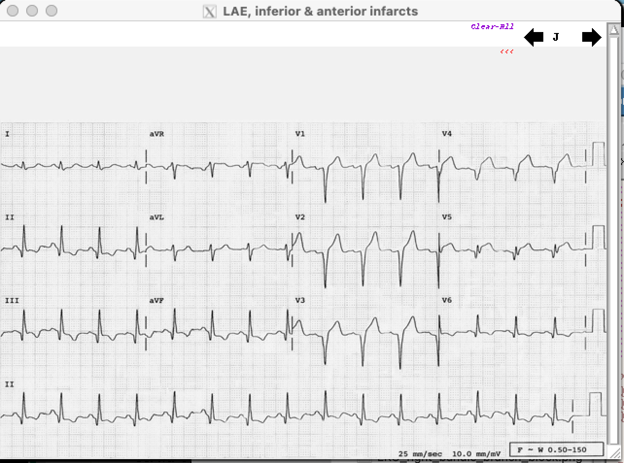 Axes Inferior infarct. Q waves in II, III, aVF. Anterior infarct. Q waves in V1-V5. P: 44 QRS: -16 T: 44