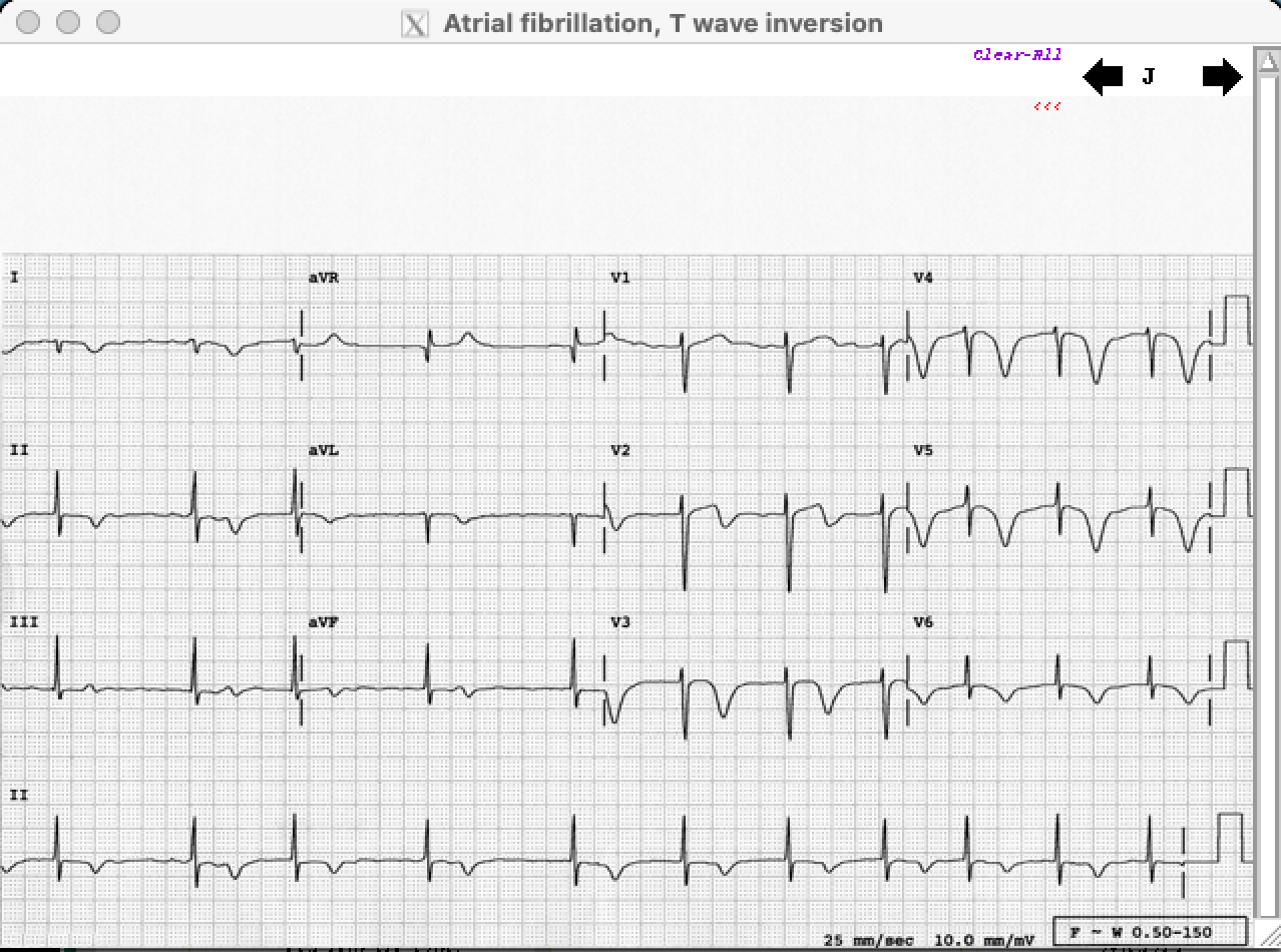 Axes Diffuse T-wave inversions Consistent with ischemia P: QRS: 118 T: 210