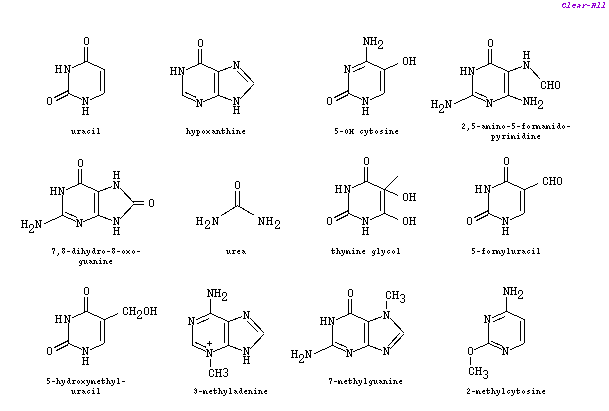 3-methyladenine, 7-methylguanine & 2-methylcytosine are products of methylation caused by methylating agents such as the endogenous S-adenosylmethionine (SAM) or the chemotherapeutic agent N-methyl-N- nitrosourea.