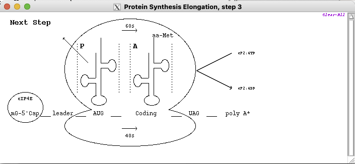 - substrate: 80S-initiation complex :a-site transfer RNA :amino acyl peptide amino acid residue - met :p-site transfer RNA :amino acyl unbound + elongation factor 2